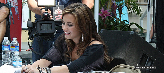 Demi Lovato tem o prazer de dar um autográfo para um fã no shopping “North Point” em Atlanta no fim de semana, durante sua turnê “Shop Til’ You Rock”.