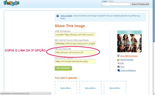 Após isso, hospede a sua imagem no twitpic ou aqui, ou aqui (apenas em um desses sites de host). E mande o link da imagem para nós, exemplo: