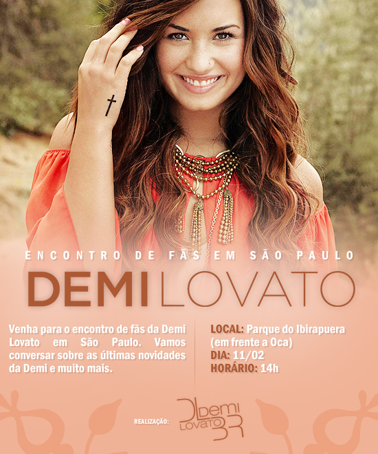 O Demi Lovato Brasil está organizando um grande evento para todos os fãs que moram na cidade de São Paulo! Vamos nos reunir para falar muito sobre Demi Lovato, cantar suas músicas, compartilhar histórias e claro, realizar muitas brincadeiras. Além disso você pode conhecer novos Lovatics e fazer novas amizades.