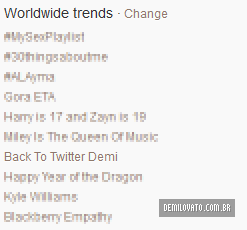 Hoje (23), vários fãs da Demi Lovato, se juntaram para subir a TAG “Back To Twitter Demi” (Volte ao Twitter Demi) nos Assuntos Mais Comentados no mundo na página do Twitter. Os fãs pediram isso após Demi declarar que deu um tempo na rede social pois só se mete em confusões (saiba mais AQUI). Veja: