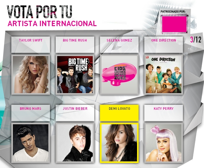 Foi divulgada a lista dos indicados ao Kids Choice Awards Mexico 2012 e Demi está concorrendo ao prêmio de Melhor Artista Internacional. Vamos ajudá-la a levar mais esta belezinha pra casa? É super fácil: