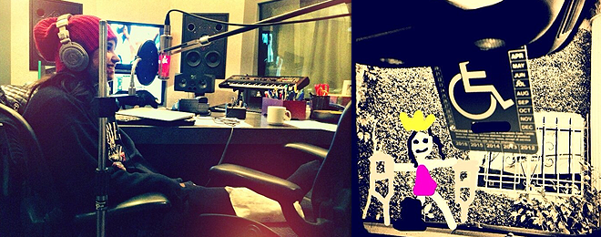 Demi Lovato usou sua conta no Twitter para mostrar como andam as gravações de seu novo álbum, que ainda não tem previsão de lançamento. A cantora, que está com uma pé quebrado, postou uma foto sentada em cadeiras e perto de um microfone gravando músicas.