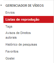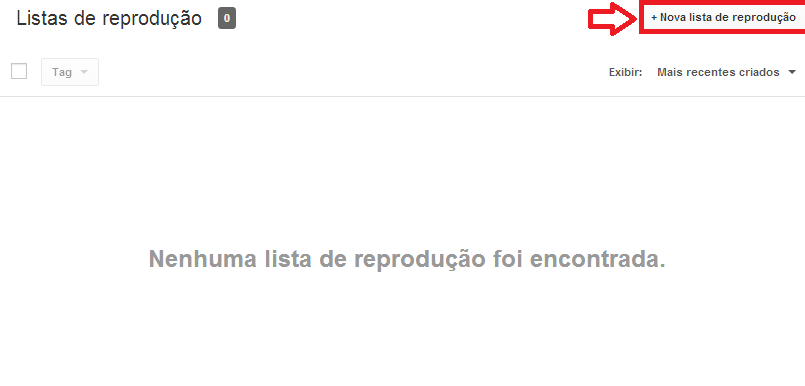 Depois de escolher “Listas de Reprodução”, aparecer na tela uma mensagem como a seguinte, logo após você deverá clicar em “+Nova Lista de Reprodução” para que você possa começar a criar sua lista: