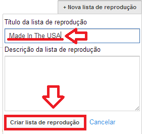 Depois de escolher “Listas de Reprodução”, aparecer na tela uma mensagem como a seguinte, logo após você deverá clicar em “+Nova Lista de Reprodução” para que você possa começar a criar sua lista: