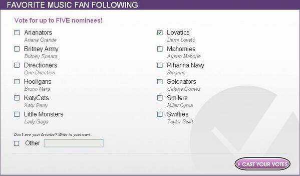Logo após iremos votar na categoria em que nós Lovatics estamos sendo pré-indicados e também dar as sugestões para que Demi seja também indicada em duas categorias as quais ela tem potencial para concorrer. Novamente, clique onde se pede abaixo e siga as instruções das imagens: