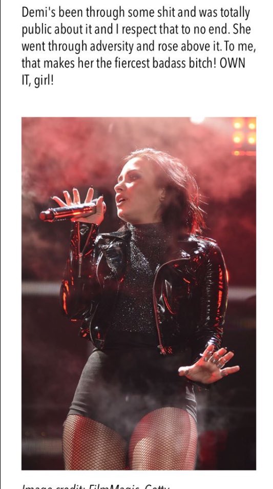 Demi já passou por algumas coisas e foi totalmente pública sobre isso e eu a respeito até o fim. Ela passou por adversidades e se levantou sobre elas. Para mim, isso faz dela a vad** fod*** mais feroz!