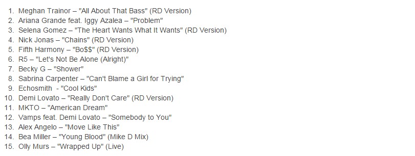 A Walt Disney Records anunciou oficialmente um álbum especial do “Radio Disney Music Awards”, contendo grandes nomes da música atualmente – Demi ficou presente em duas faixas, com Really Don’t Care e com Somebody To You, parceria com a banda britânica, The Vamps!