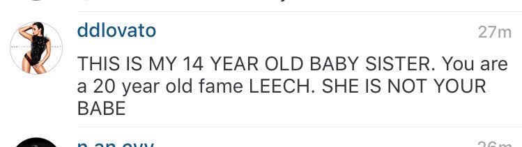 “Esta é minha irmãzinha de 14 anos. Você é uma sanguessuga de fama de 20 anos. Ela não é seu bebê!”